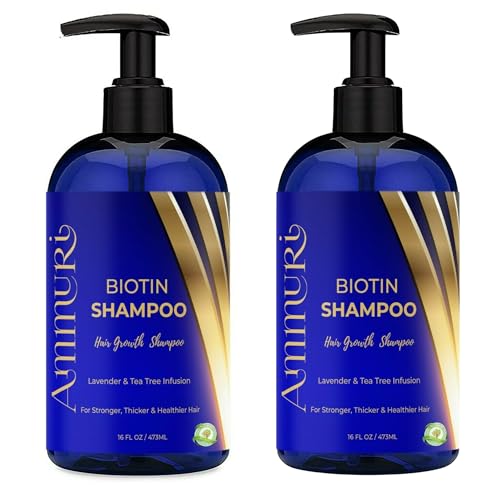 Ammuri Biotin Caffeine Shampoo Hair Growth Thickening Caffeine, Biotin, Argan Oil, Rosemary & Niacinamide DHT Blocker, Anti-Dandruff & Hair Loss Treatment Strengthens Scalp Reduces Thinning 473ml