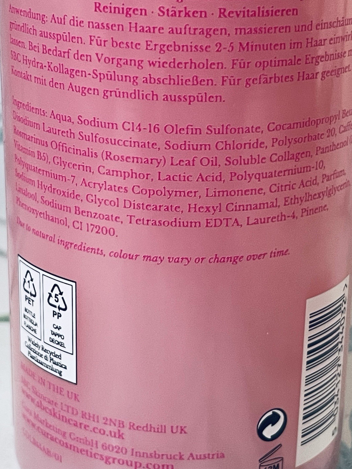 SBC Hydra Collagen And Caffeine Shampoo Rosemary Oil Fine Fragile Hair 500ml
