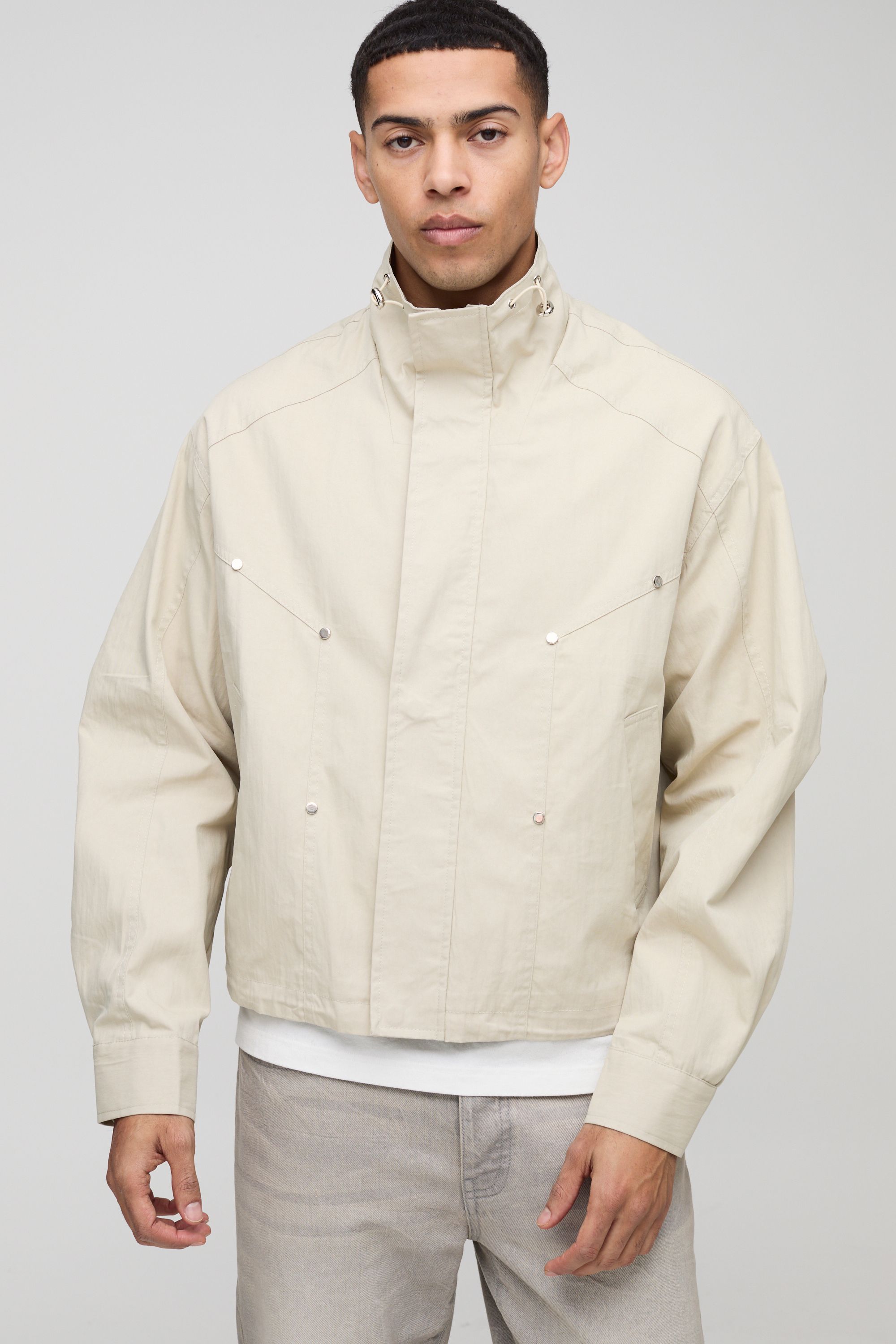 boohooMAN Mens Oversized Boxy Twill Funnel Neck Cagoule Jacket - Ecru Cotton - Size X-Large