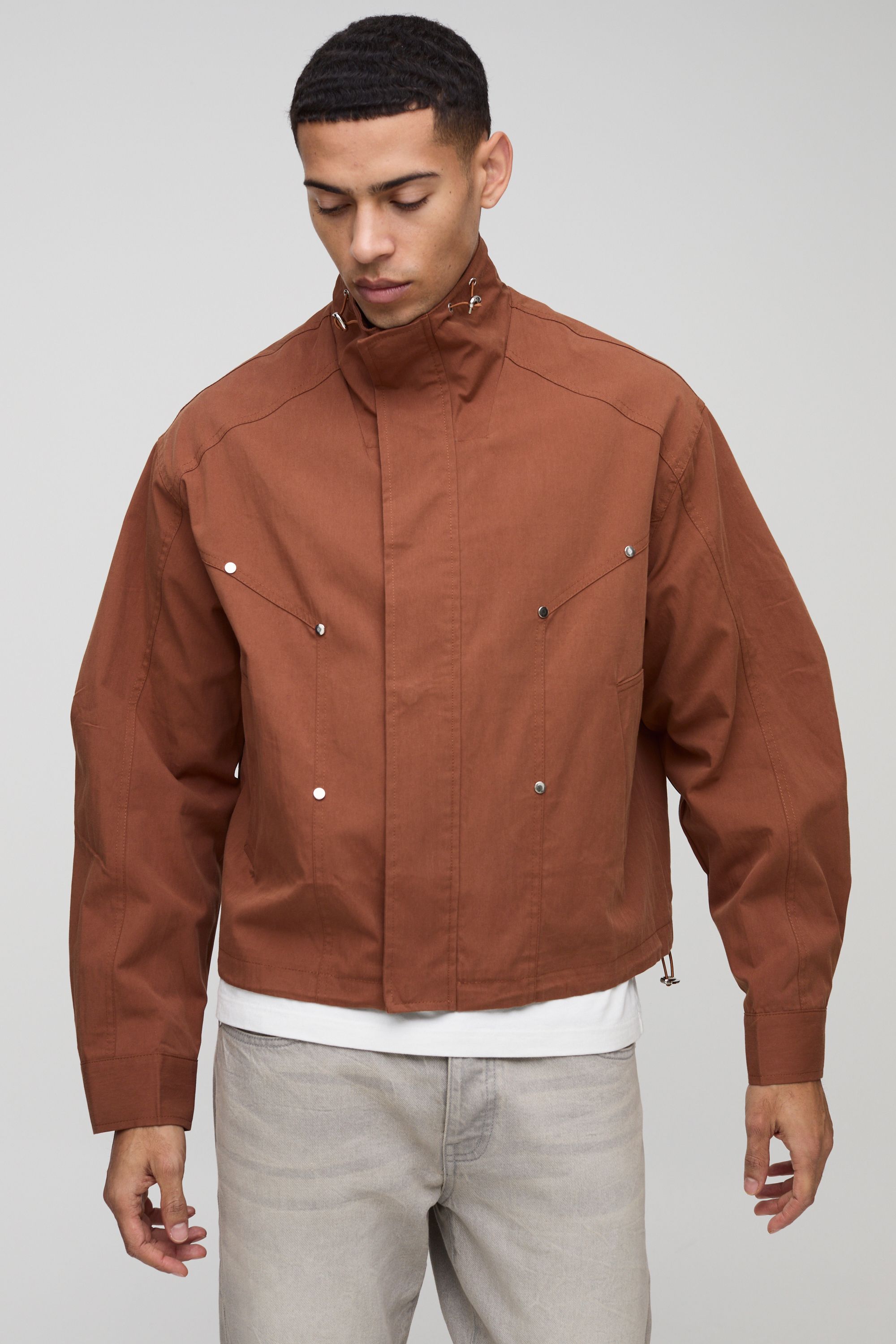boohooMAN Mens Oversized Boxy Twill Funnel Neck Cagoule Jacket - Rust Cotton - Size Medium