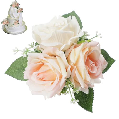 Flower Cake Topper, Artificial Rose Flower Cake Pans Decorations for Wedding Bridal Shower Anniversary Birthday Party (3 flowers)