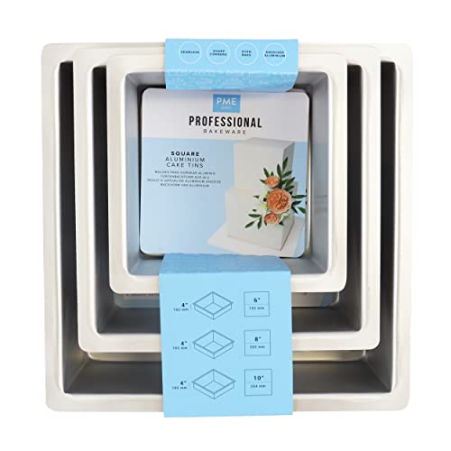 PME Square Cake Pans 6, 8, 10-Inch x 4-Inch Deep, Set of 3, Silver (SQRB68104)