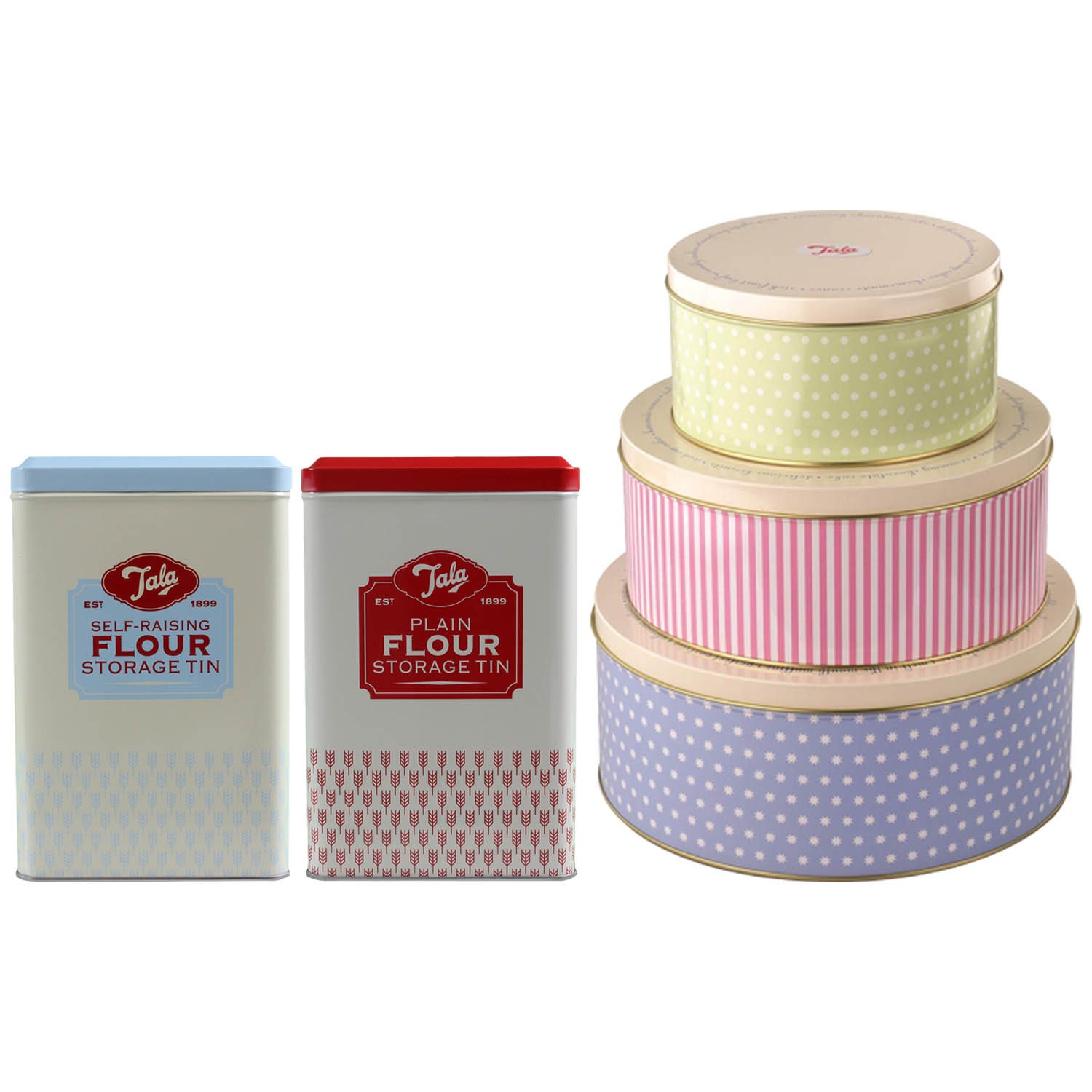 Kitchen Storage Accessory Set Self Raising Flour & Round Cake Tins Container 5Pc