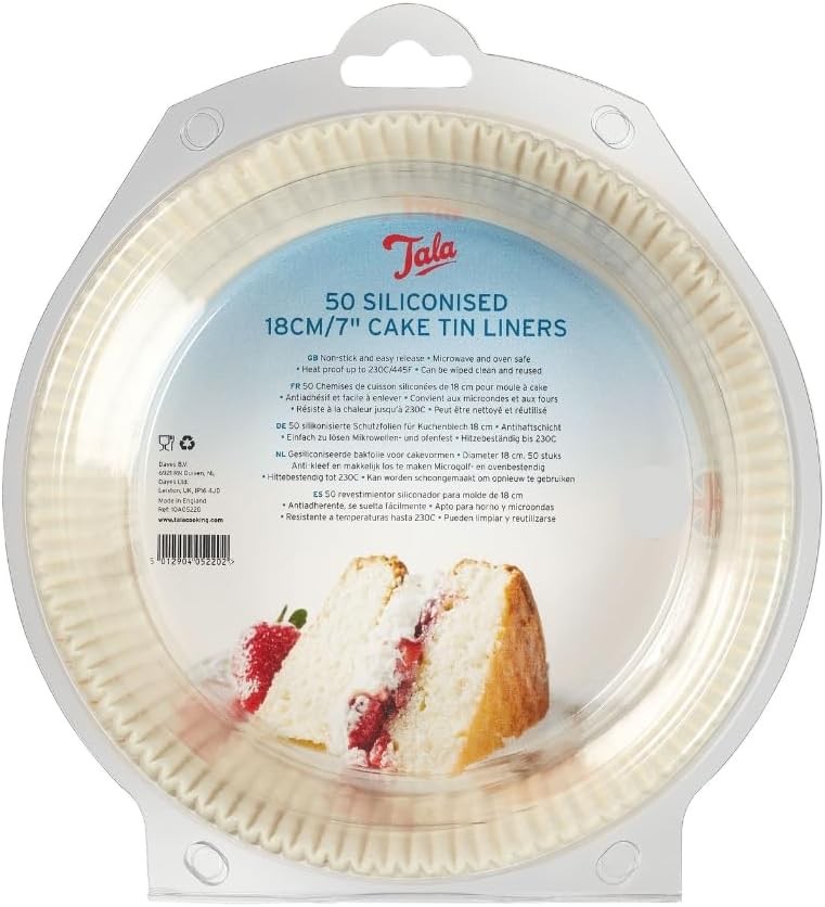 Tala Siliconised Cake Tin Liners, Non-Stick Paper Liners for Quick and Easy Release When Baking Bread and Cakes Products, 18cm / 7 Inch Diameter
