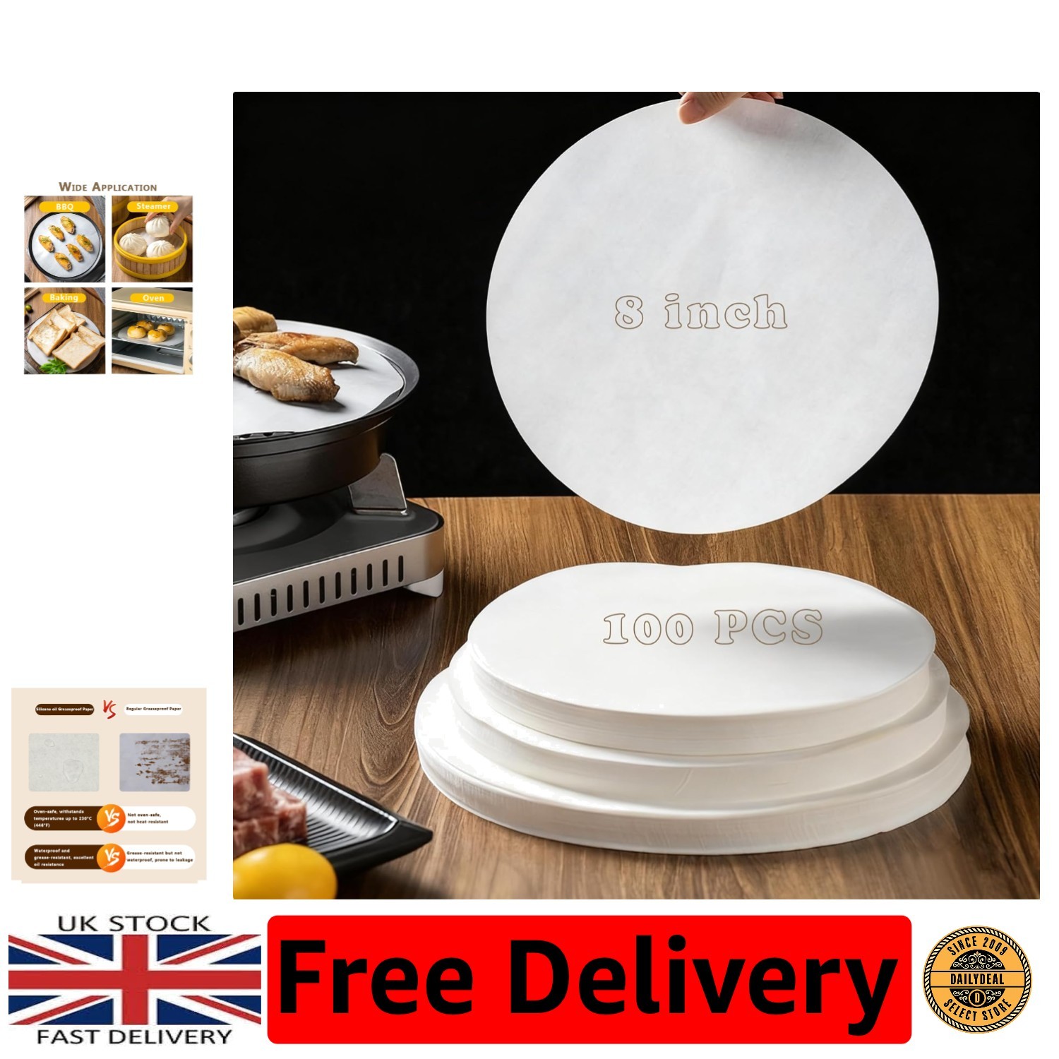 8 Inch Baking Parchment Circles, Set of 100, 7/9/10/12inch Cake Tin Liners Avai