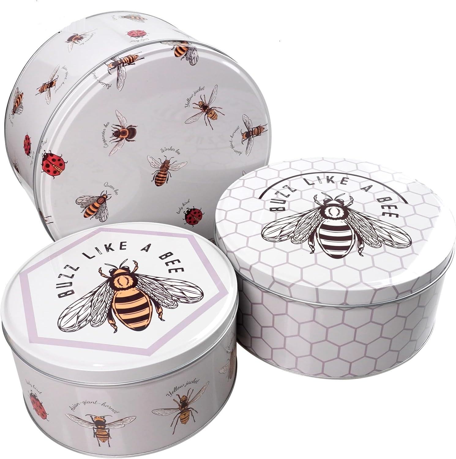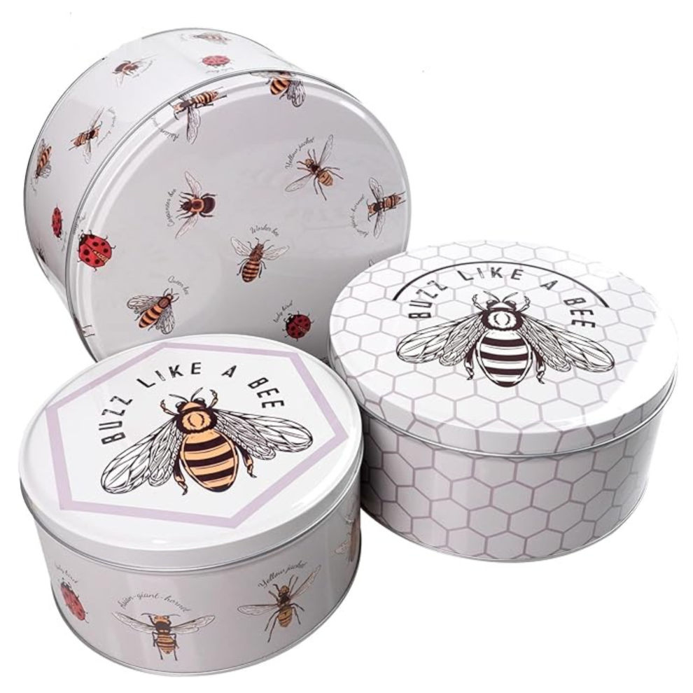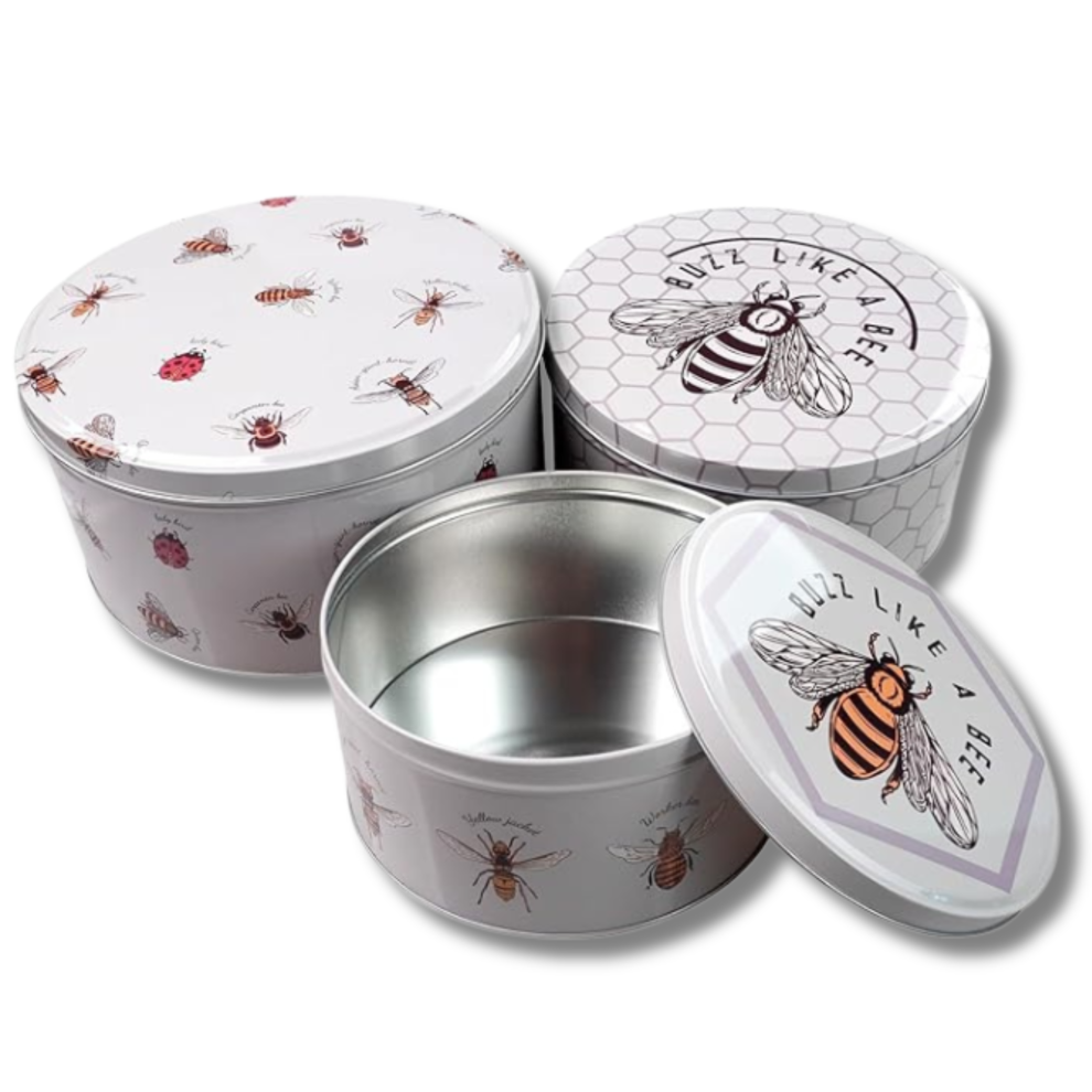 (Bumble Bee) Set of 3 Round Nesting Cake Storage Tins airtight