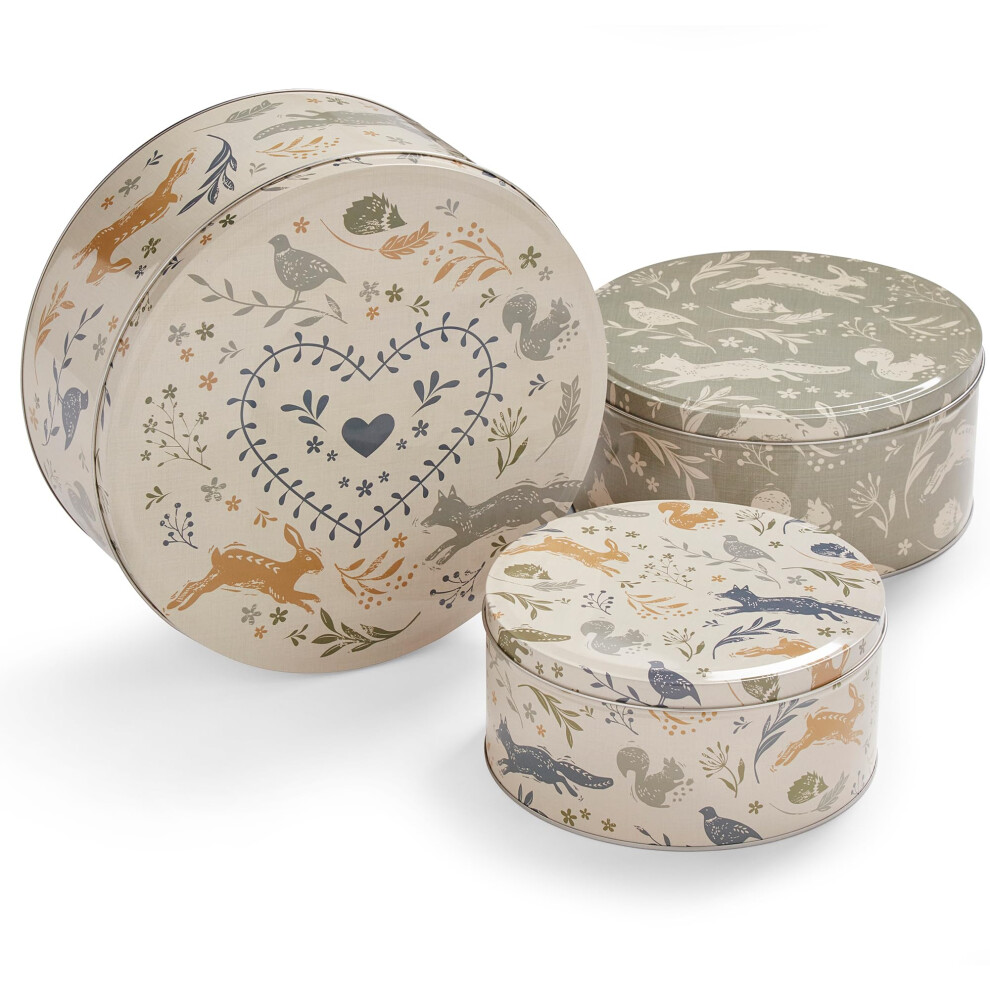 Cooksmart England Set of 3 Cake Storage Tins | Cake Tin/Biscuit Tin Available as Square Storage Tin or as Round Storage Tin (Woodland)