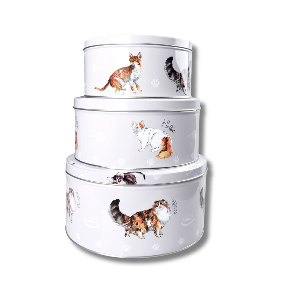 (Stylish Cats) Set of 3 Round Nesting Cake Storage Tins airtight