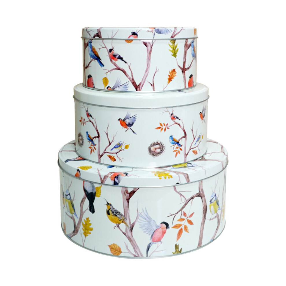 (Spring Birds) Set of 3 Round Nesting Cake Storage Tins airtight