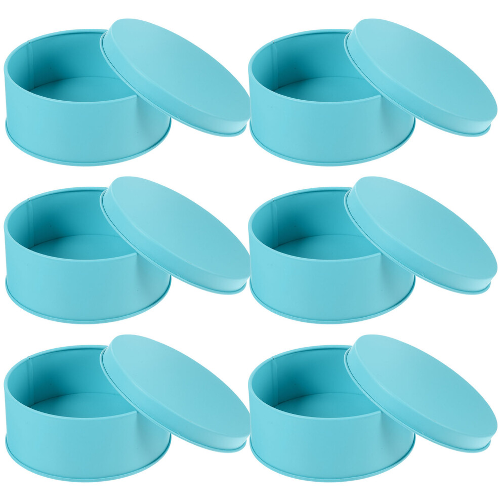6Pcs Round Cookie Tins Cake Baking Candy Storage Tinplate Jar