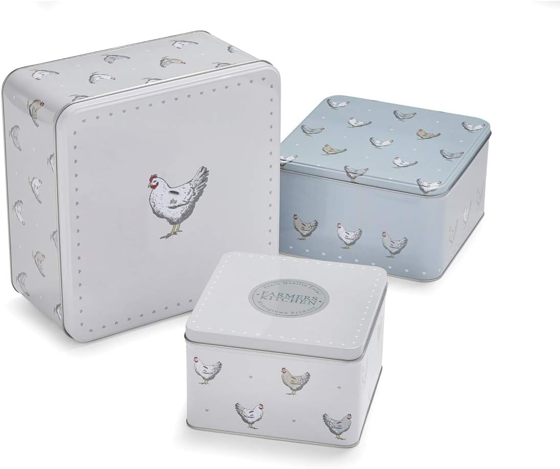 Hen House Lane Set of 3 round Cake Tins | Nesting Storage Tins for Cakes, Biscui