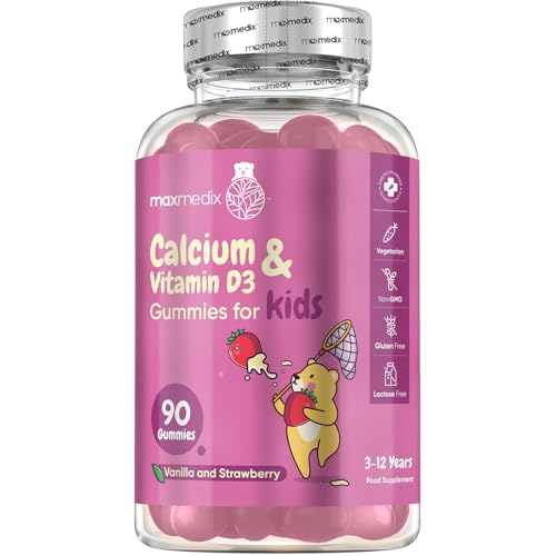 Calcium and Vitamin D3 Gummies for Kids 90 Gummies Strawberry & Vanilla Flavoured Calcium Not Calcium Tablets 3-12 Years