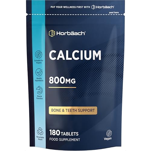 Calcium Tablets 800mg | High Strength Calcium Carbonate Supplement for Men & Women | 180 Vegan Tablets | Horbaach