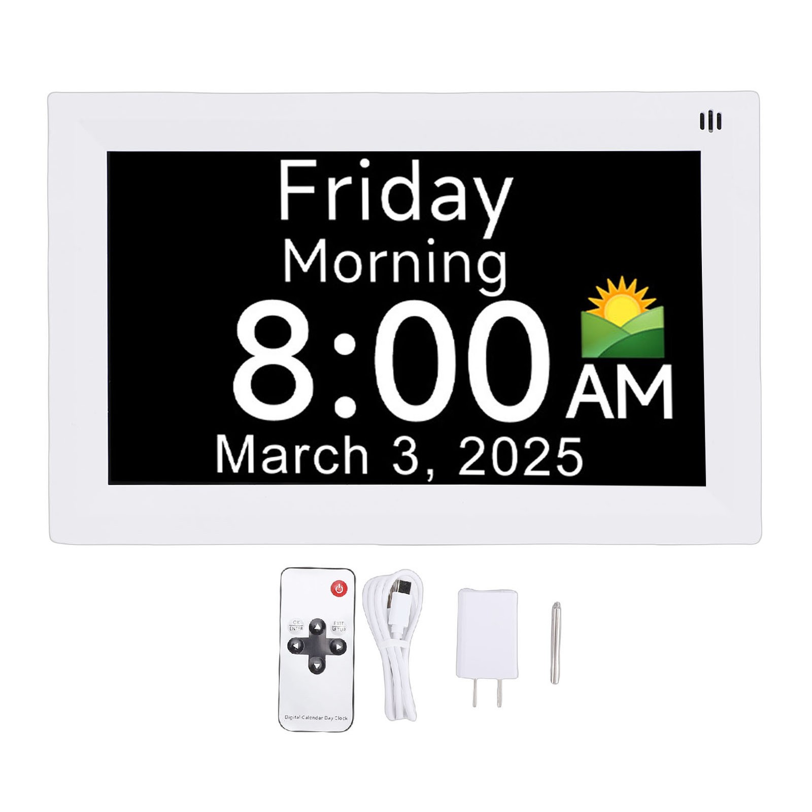 Digital Photo Frame with Calendar and Alarm, Large Clear Display Clock for Seniors, 10 Inch White