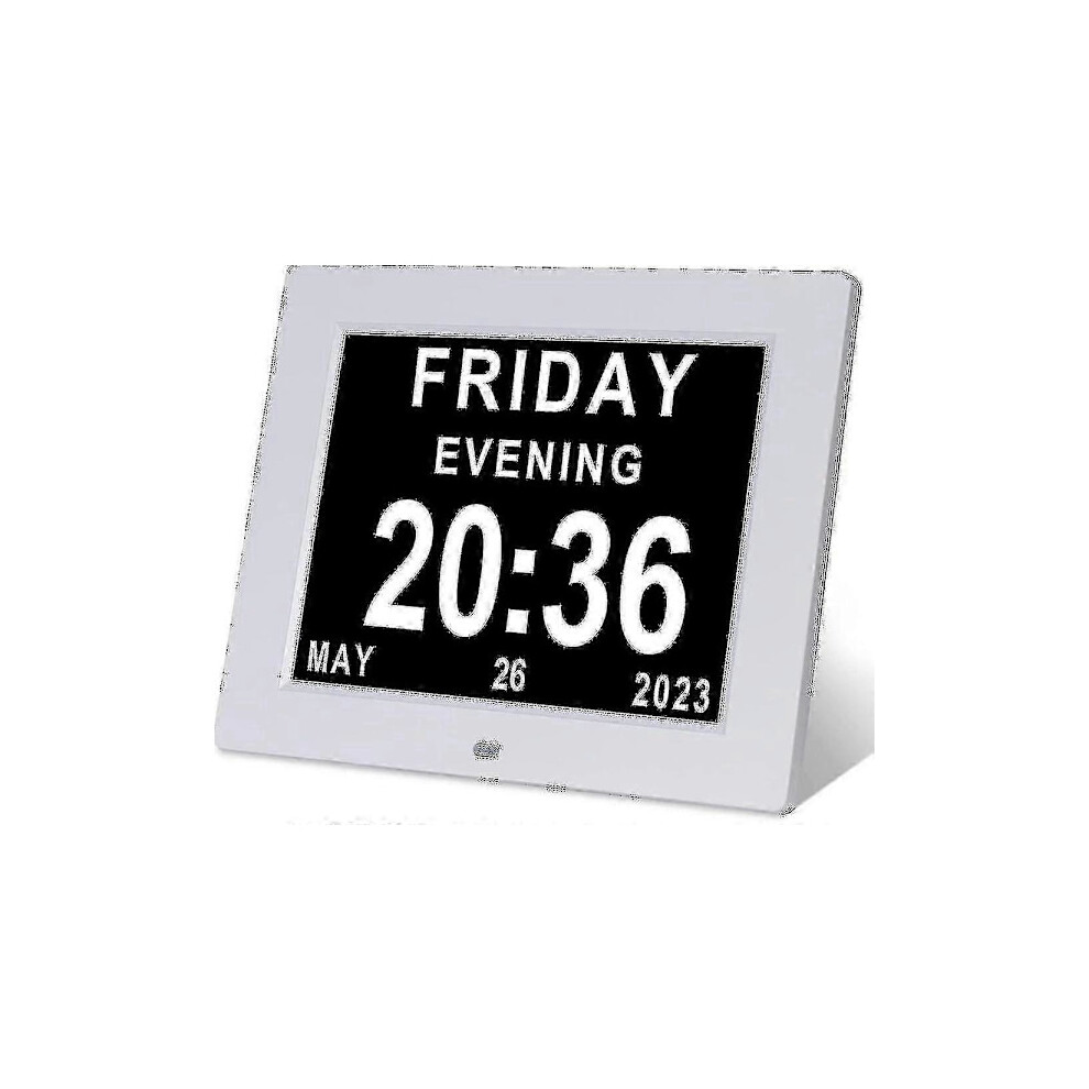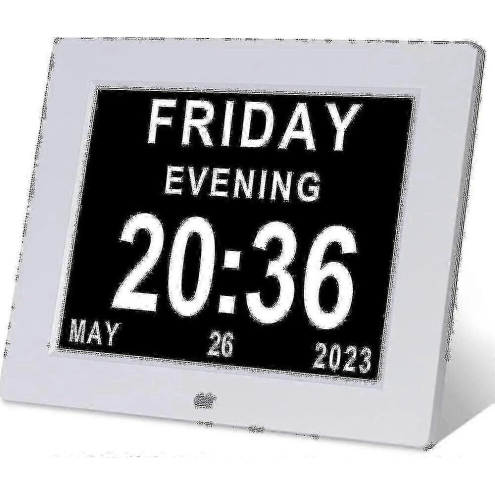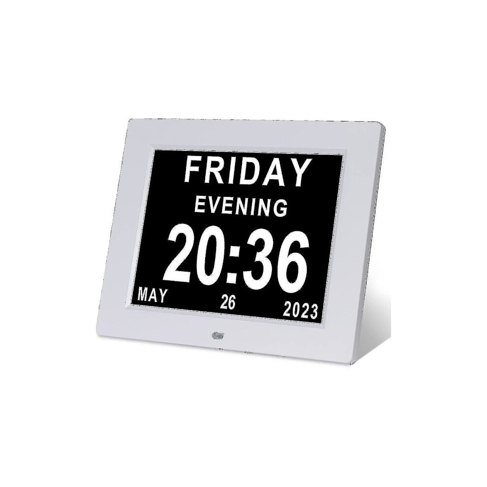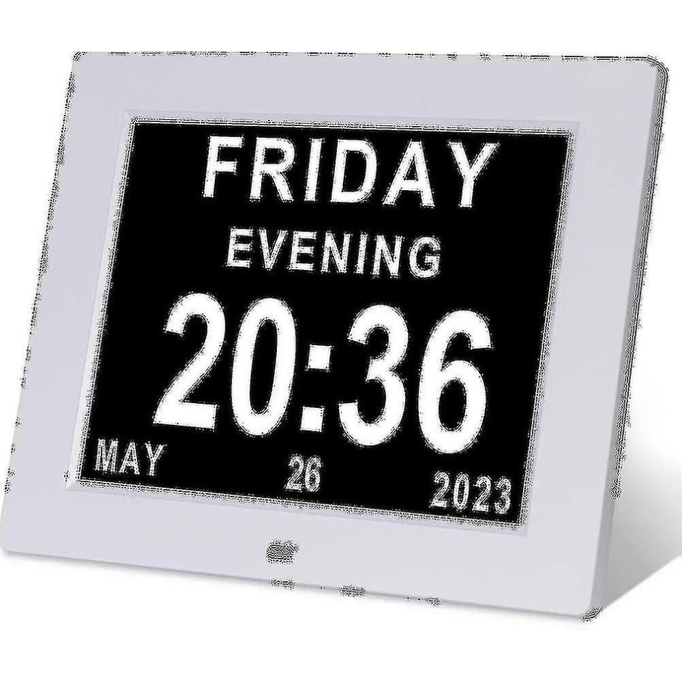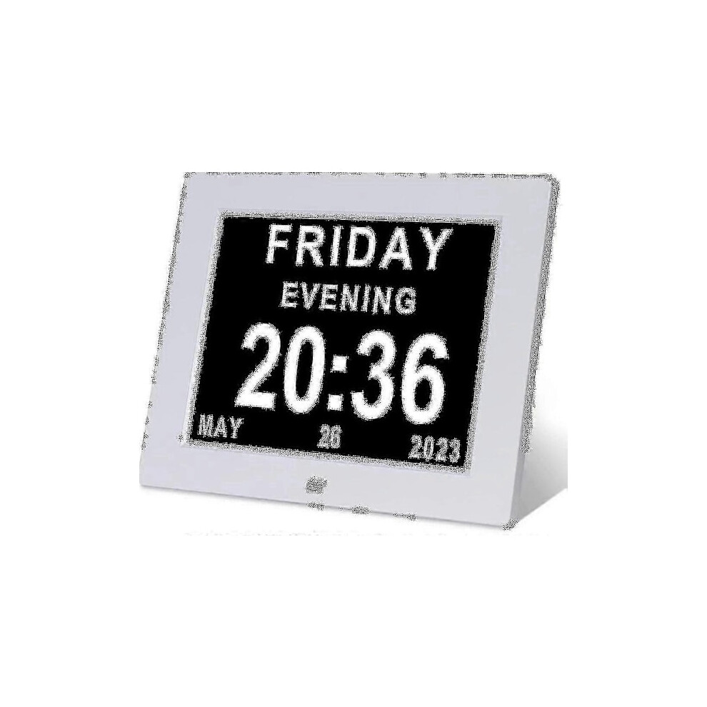 Digital Calendar Clock For Seniors With Daylight Saving Time Adjustment, 8 Inch Screen Spells Out Full Day Date Month Year With Custom Reminders And
