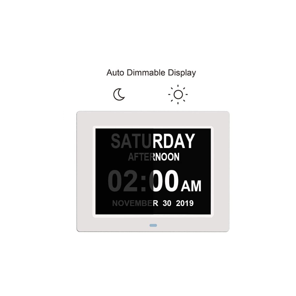 Clock Calendar with Date Day Time Large Auto Dimming Alarm for Seniors - Alzheimer's And Children-white