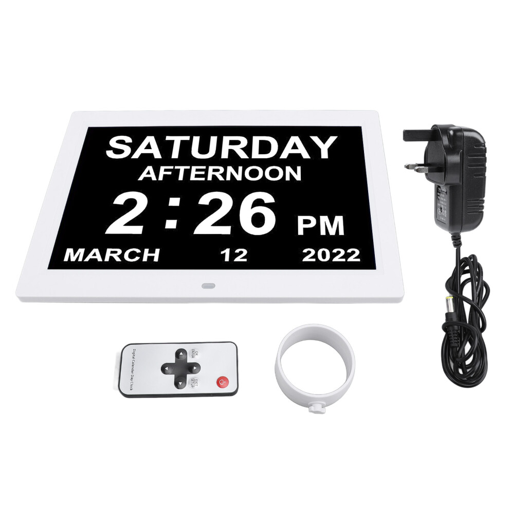 (UK Plug) 12 Inch Digital Calendar Clock with 3 Medication Reminders for Seniors