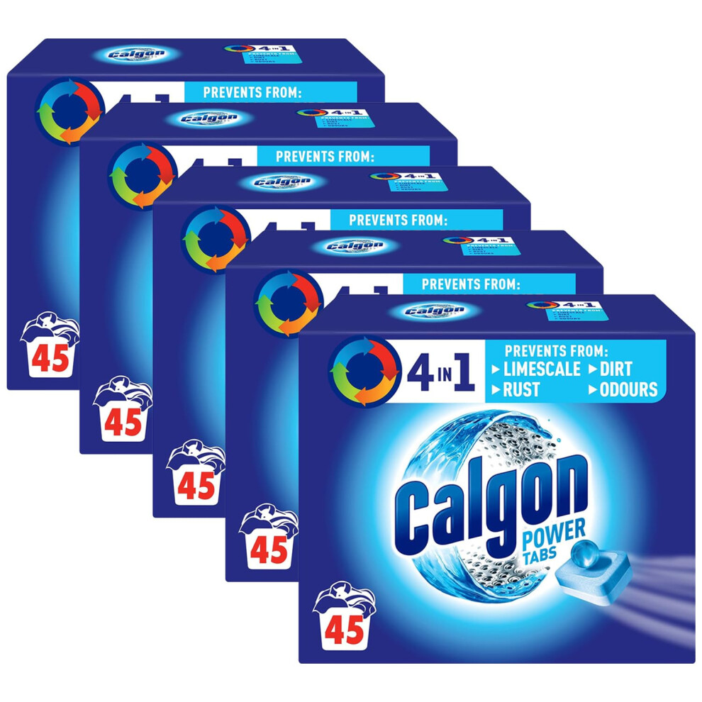 Calgon 4-in-1 Water Softener Tablets Washing Machine Cleaner Removes Odours Limescale Residue Deep Clean Units 45 Tablets Size L Pack of 45