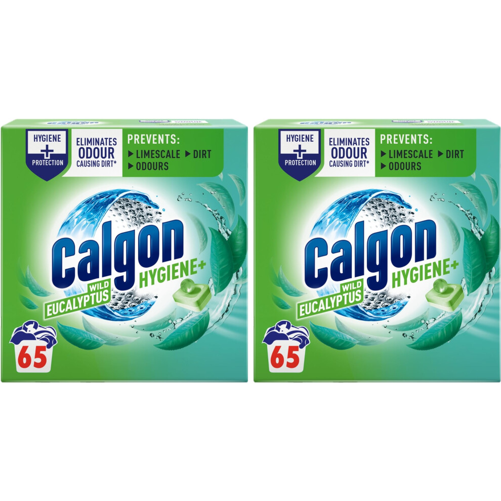 Calgon Hygiene Plus Washing Machine Cleaner & Limescale Remover, Water Softener Tablets, Unscented, 65 Tablets, Pack of 2 (130 Tabs Total)