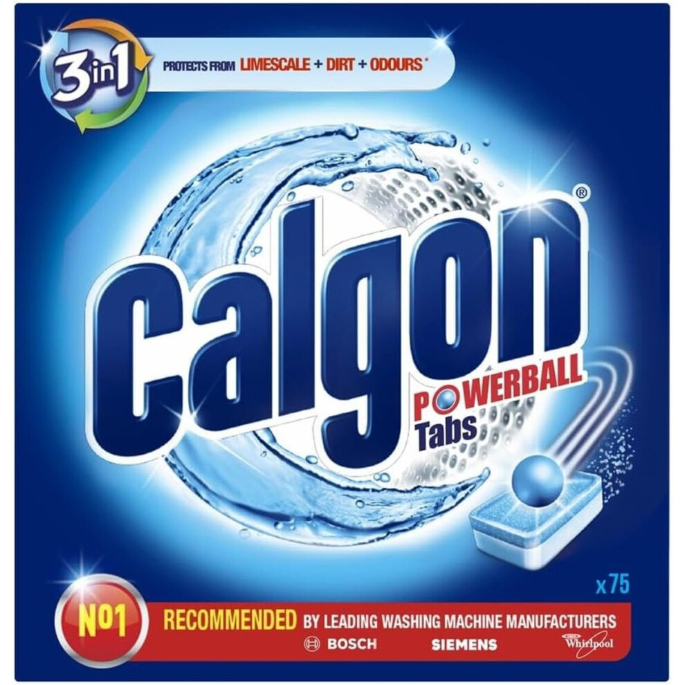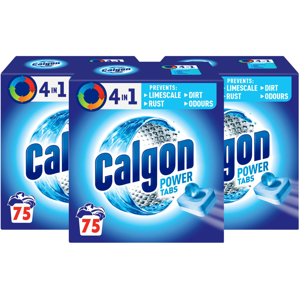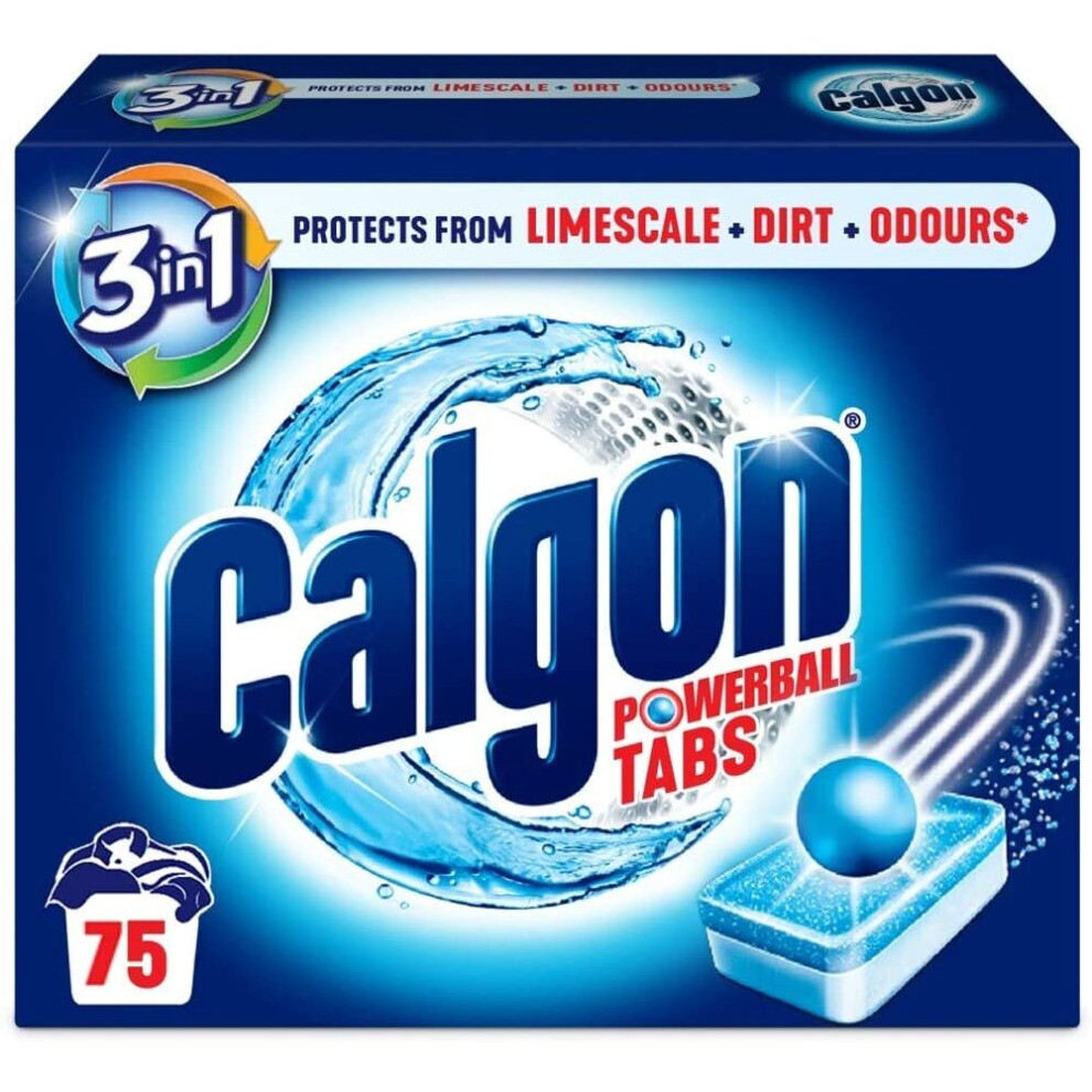 Calgon 3-in-1 Water Softener Tablets, Washing Machine Cleaner, Removes Odours, Limescale and Residue, Deep Clean, Units: 75 Tablets, Size: XL Pack,