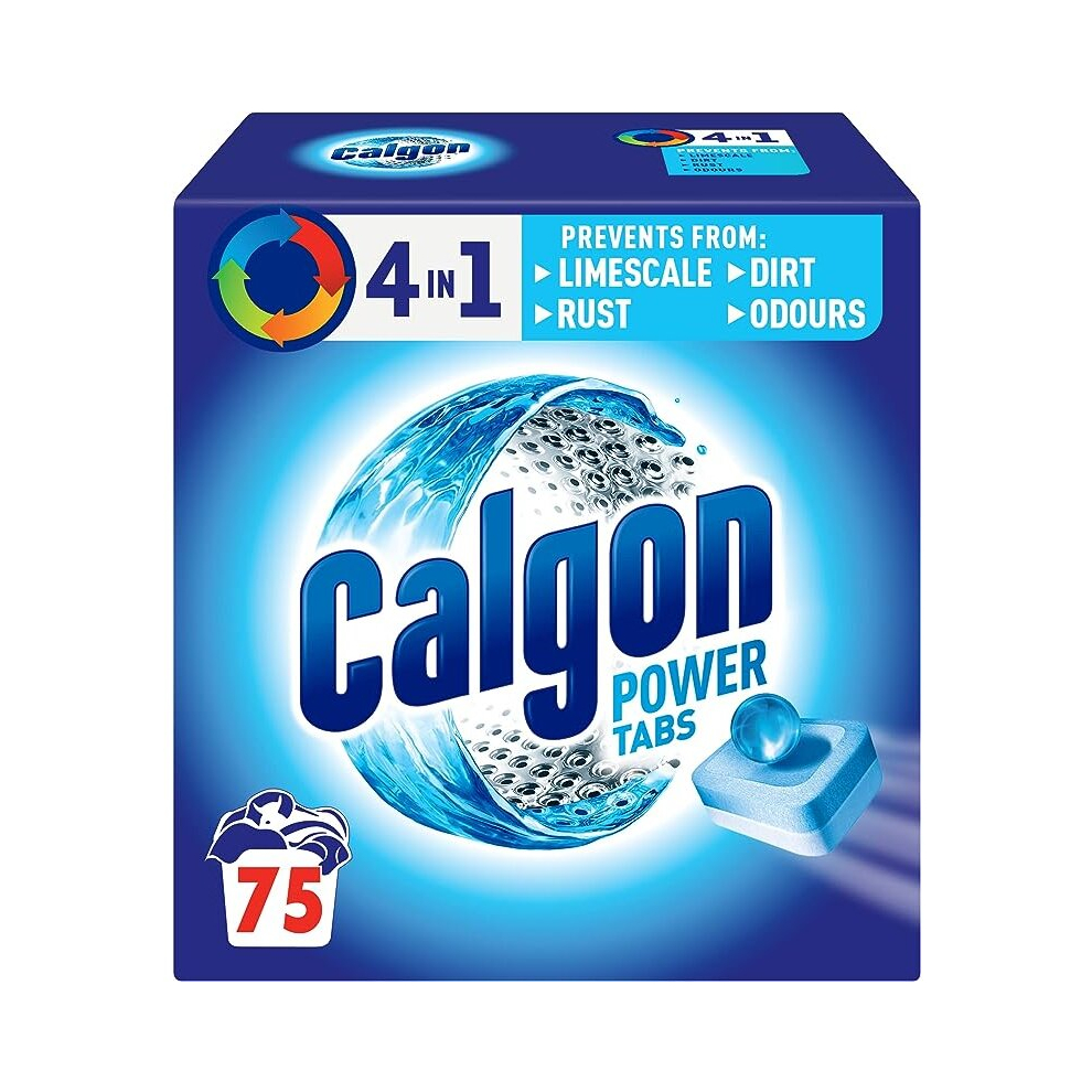 Calgon 4in1 Washing Machine Cleaner and Water Softener Tablets 75 Count Removes Limescale Residue Dirt Rust Malodours Deep Clean XL Pack Size