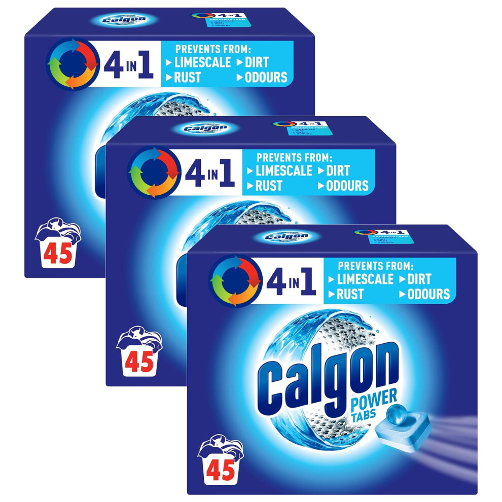 Calgon 4-in-1 Water Softener Tablets, Washing Machine Cleaner, Removes Odours, Limescale & Residue, Deep Clean, Units: 45 Tablets, Size: L Pack, Pack