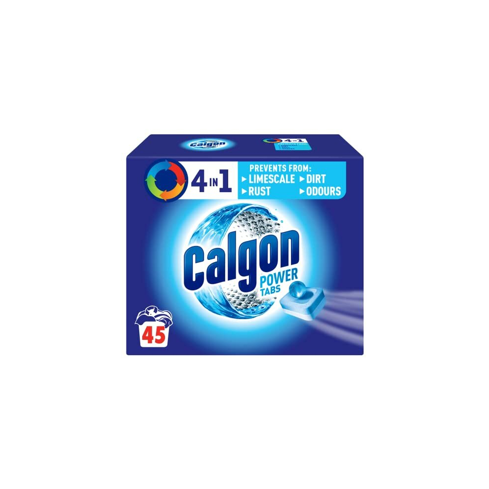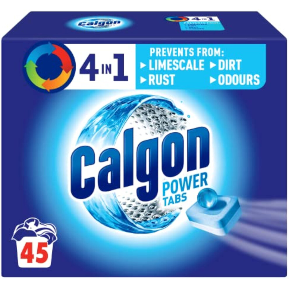 Calgon 4-in-1 Washing Machine Cleaner and Water Softener Tablets, 45 Count | Removes Limescale, Residue, Dirt, Rust & Malodours | Deep Clean | L Pack Size