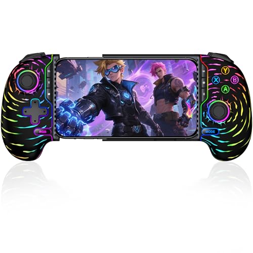 HASACOOL Mobile Gaming Controller for Android/iPhone,RGB Light Hall Effect Joystick Wireless Phone Controller-PS Remote Play/Xbox Cloud/Steam Link/GeForce Now/MFi Apple Arcade-Call of Duty,Roblox