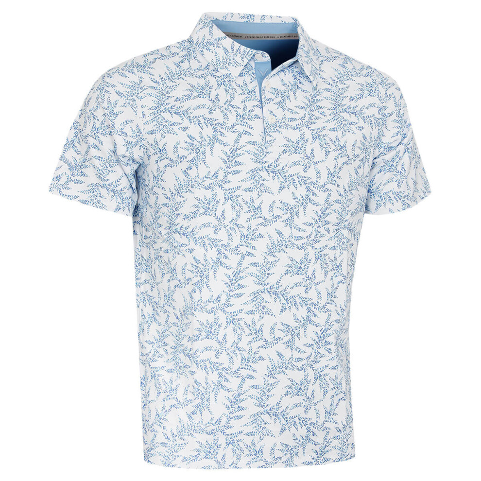 (M, Vista Blue) Callaway Mens Chev Botanical Opti-Dri Easy Care Stretch Golf Polo Shirt