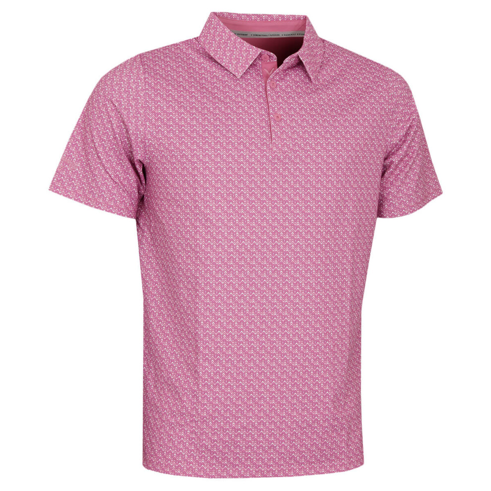 (M, Rose Bouquet) Callaway Mens Timeless Chev Print Opti-Dri Stretch Eco Golf Polo Shirt