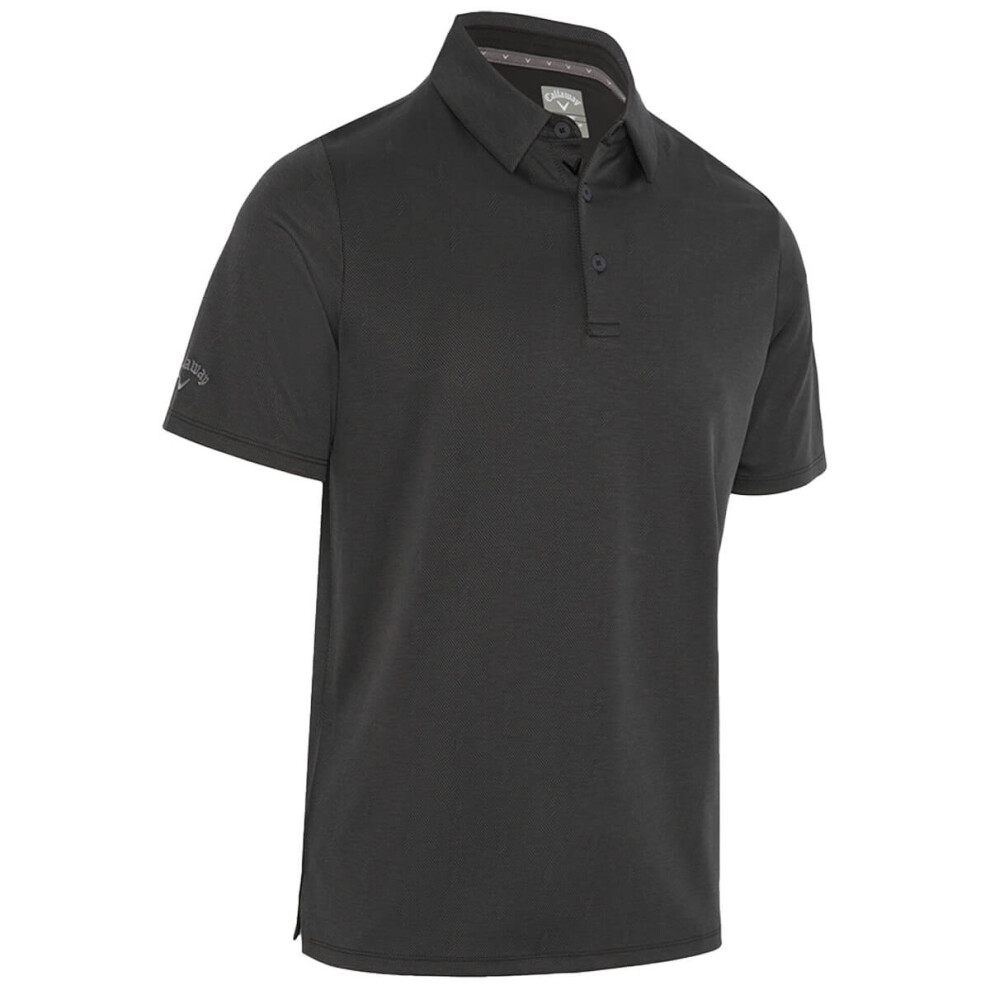 (L, Caviar) Callaway Golf Mens Chev Twill Jacquard SwingTech Opti-Dri Eco Polo Shirt