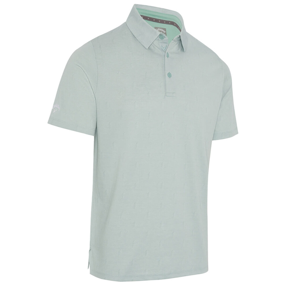 (M, Aquifer) Callaway Golf Mens Chev Twill Jacquard SwingTech Opti-Dri Eco Polo Shirt