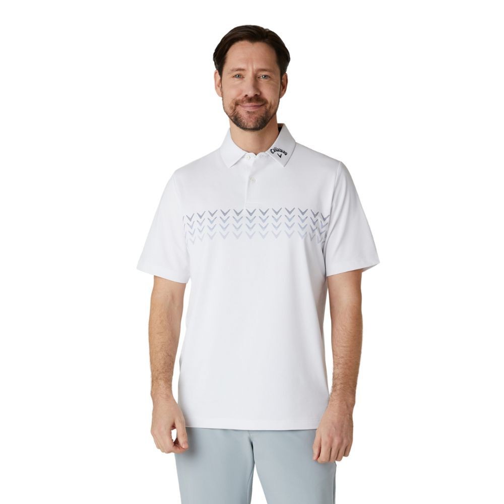 Callaway Golf Mens Chev Confetti Print Polo Shirt - Bright White - S