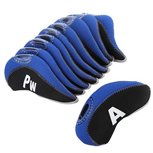 10Pcs/Set Golf Club Iron Head Covers Heads Protector Headcovers Compatible with Taylormade Ping Mizuno Titleist Callaway-Black&BLue Golf Gifts for Men