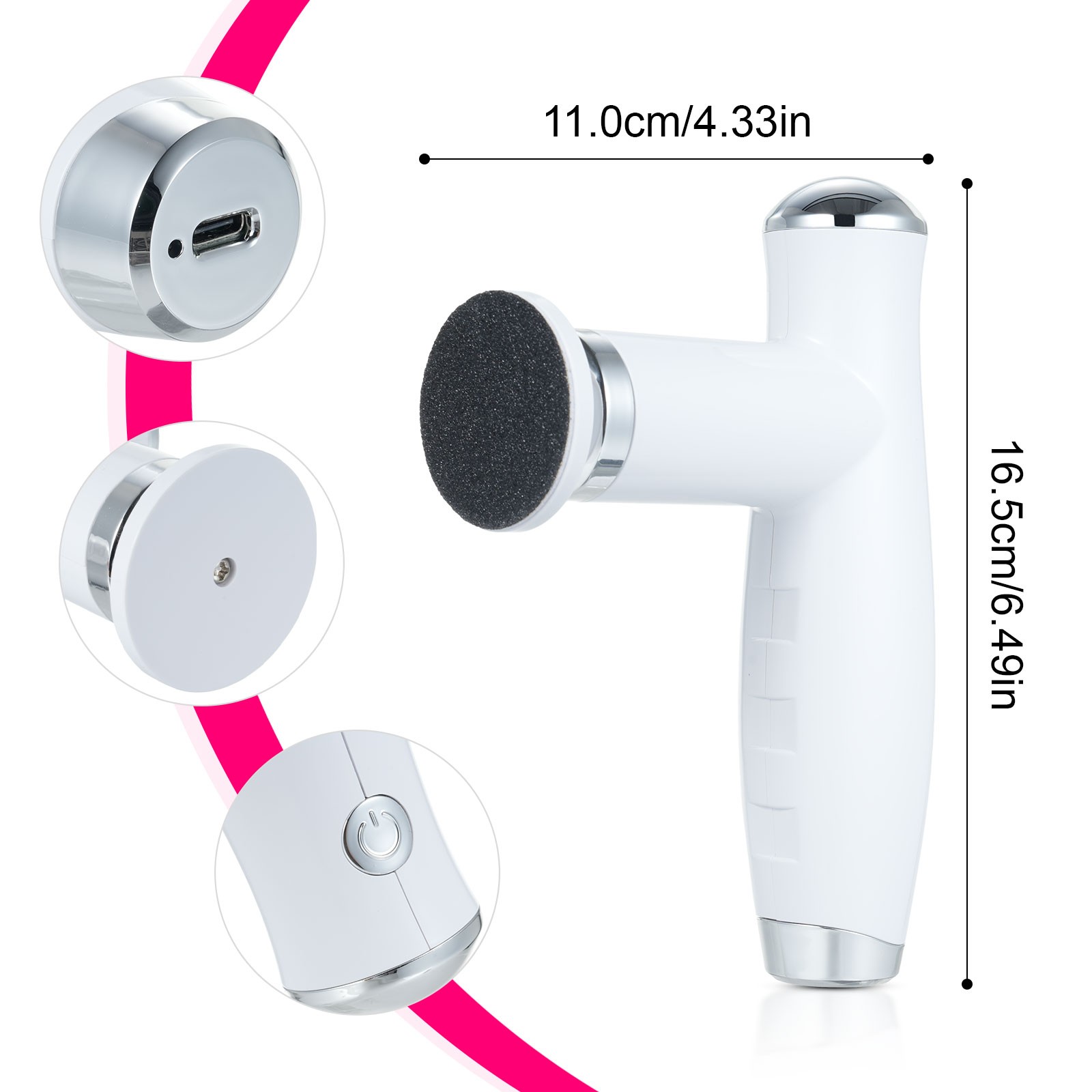 Electric Foot File Callus Remover for Feet Dead Hard Cracked Dry Skin White Gray