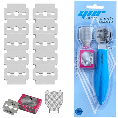 YNR Callus Remover for Feet - Foot File Corn & Callus Remover, Pedicure Tool Includes 10 Replacement Heads, Heel Scrubber & Scraper, Corn Remover for Feet | (Stainless Steel)