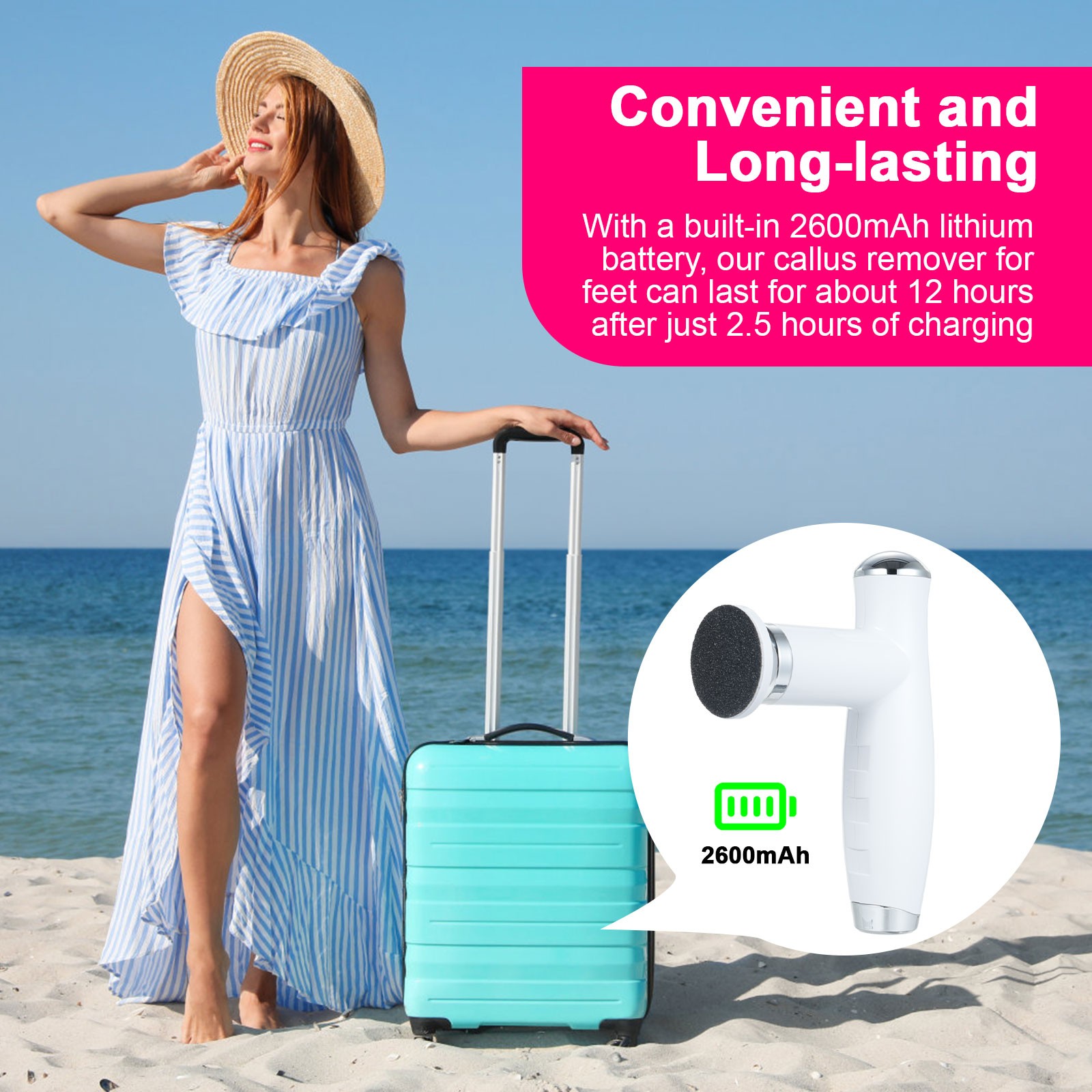 Electric Foot Callus Remover for Feet, Rechargeable Portable Electronic Foot Fi
