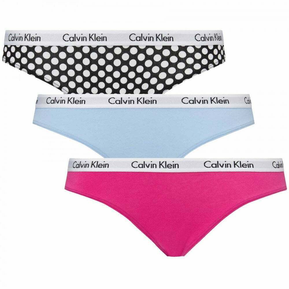 Calvin Klein Ladies Bikini Brief 3 Pack Black Dot/Cantrell Blue/Magenta Bright L
