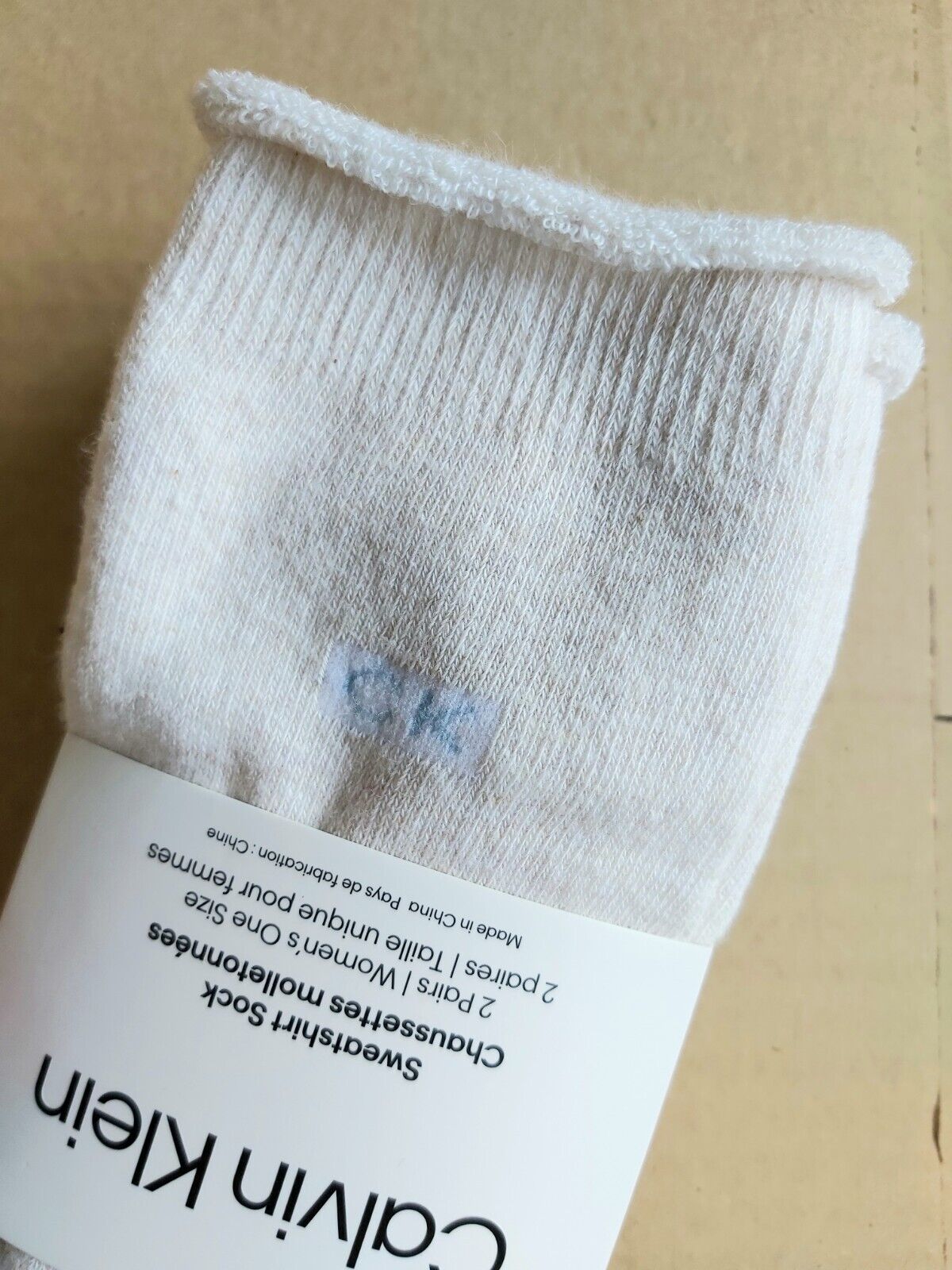 2 Pairs CALVIN KLEIN Oat & Blue Marl Womens Roll Top Sweatshirt Ankle SOCKS CK10