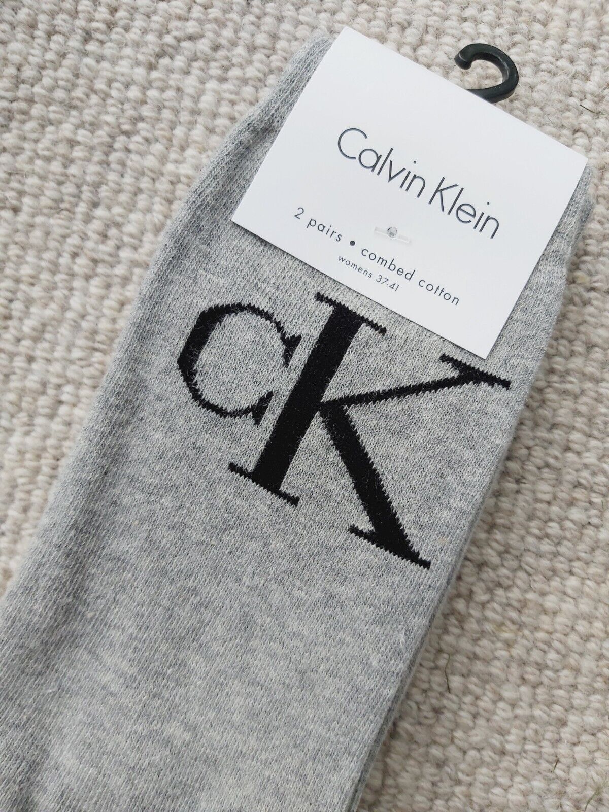 2 Pairs : CALVIN KLEIN Grey Marl Cotton Ankle SOCKS UK foot 4-7 , 37-41 CK10