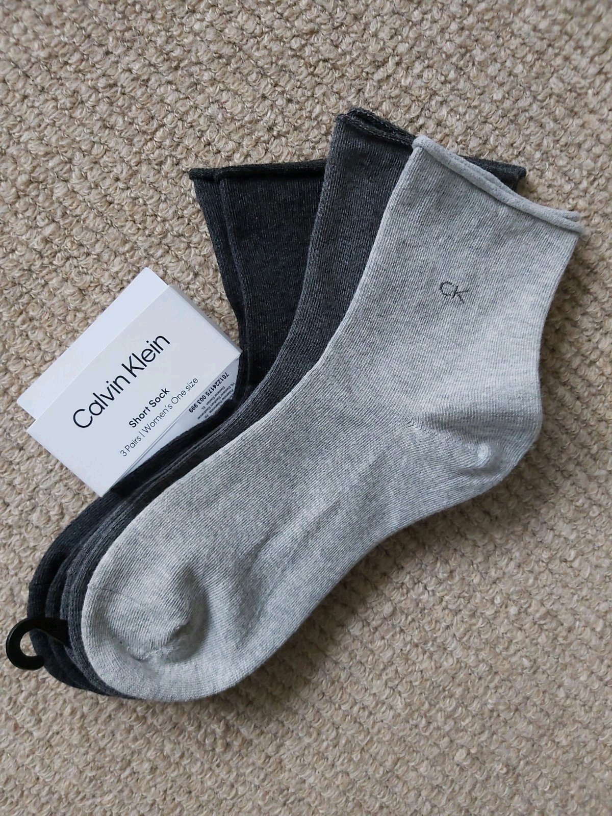 3 Pairs CALVIN KLEIN Shades of Grey SHORT ANKLE Roll Top SOCKS Adult CK2