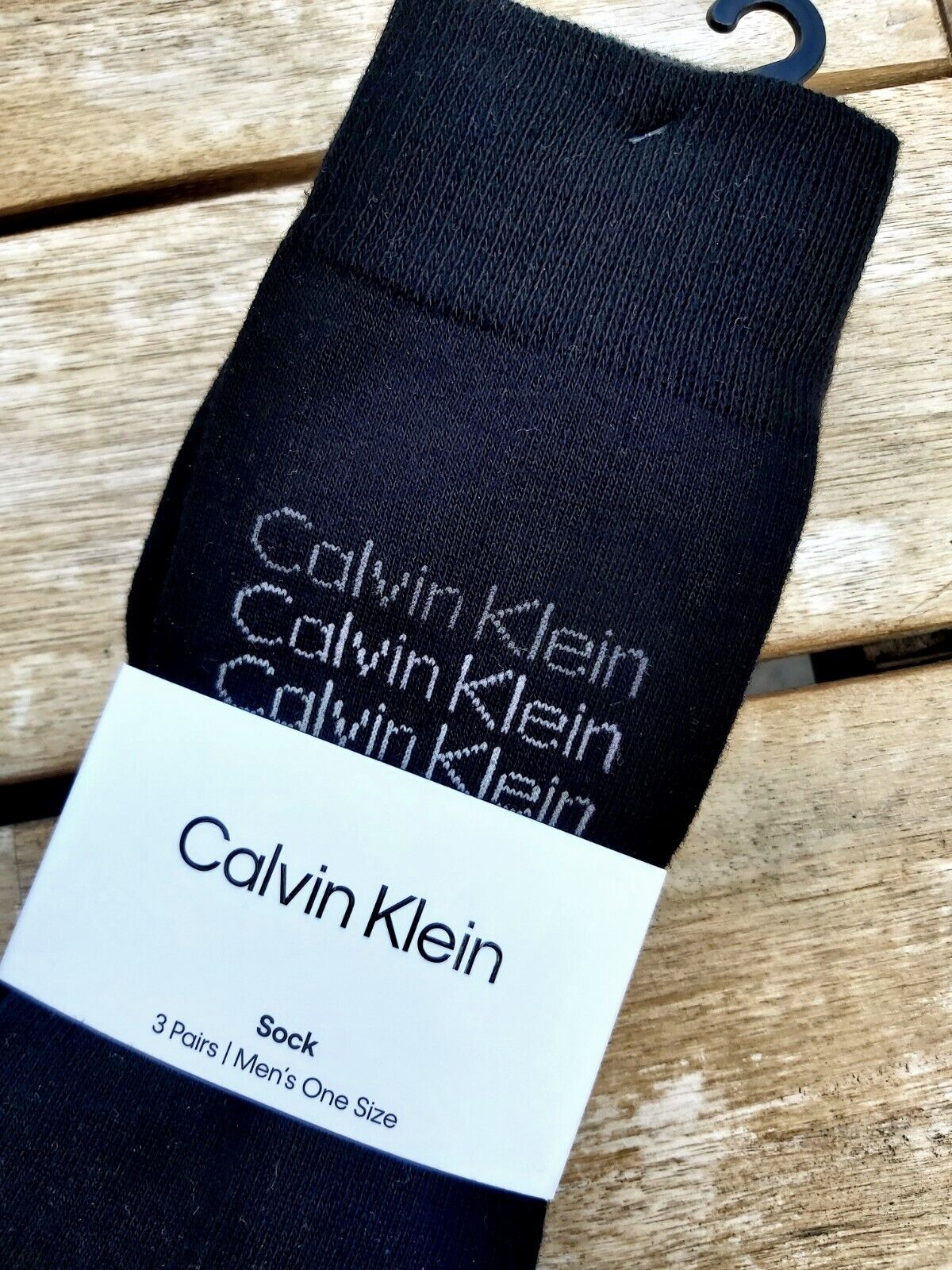 3 PAIRS : CALVIN KLEIN 6.5-11 40-46 Cotton Black MENS Logo 69% Cotton SOCKS CK9