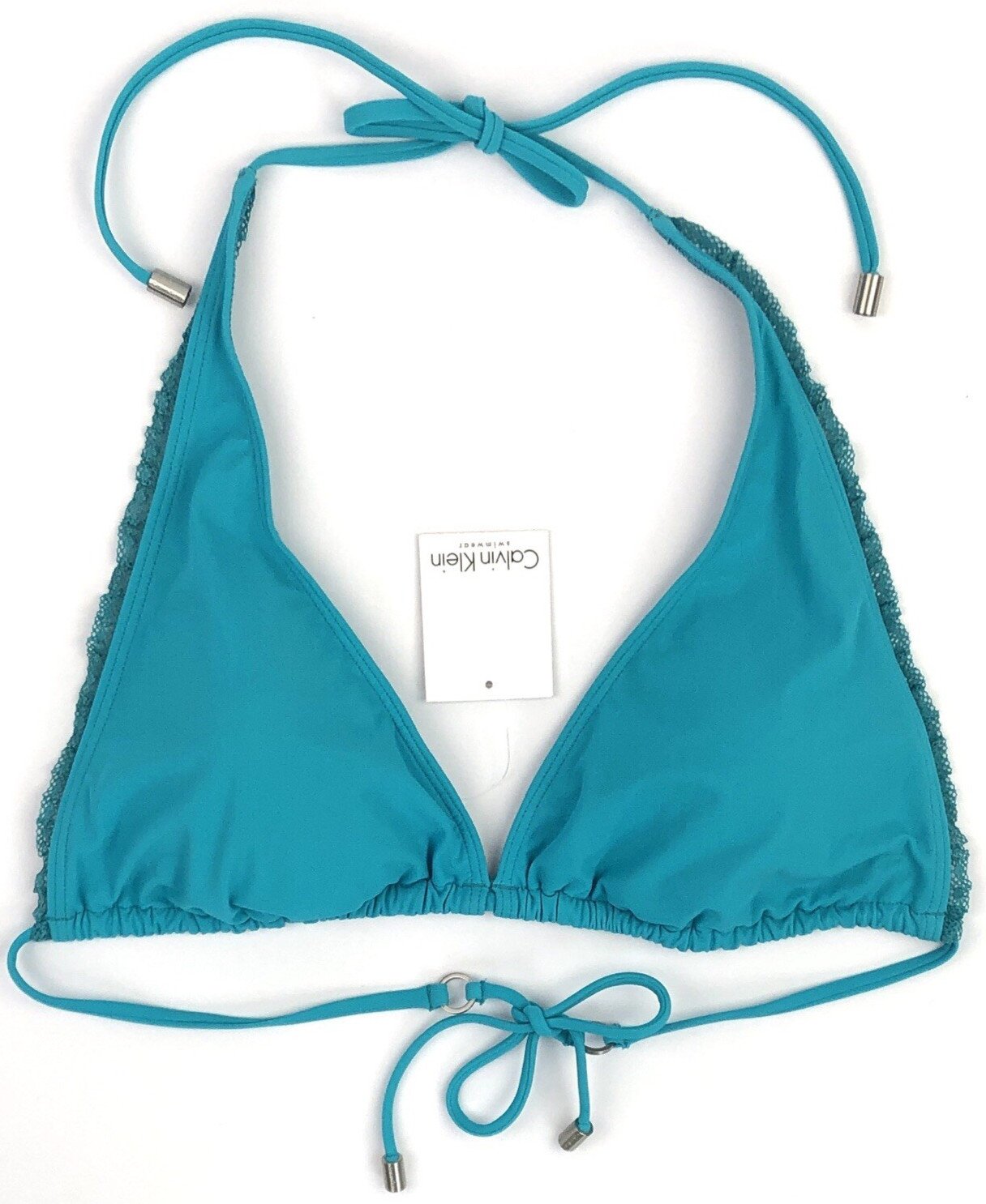 CALVIN KLEIN Core Solids UK 16 Padded Bikini Top Solid Turquoise Blue BNWT