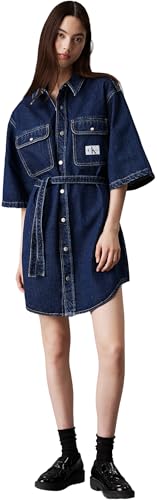 Calvin Klein Jeans Women's Utility Belted Shirt Dress Other Dresses, Denim Dark, XS