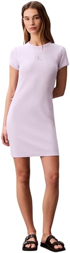 Calvin Klein Women's Ss Monologo Baby Rib Mini Dress LV047F241G Dresses, Purple, XXL