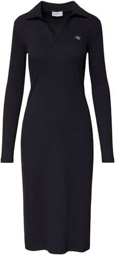 Calvin Klein Women's LS Woven Label 2X2 Rib MINI DRES LV047E204G Dresses, Black (Black), L
