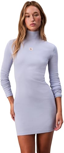 Calvin Klein Women's LS Woven Label 2X2 Rib MINI DRES LV047E204G Dresses, Purple (Casual Blue), S