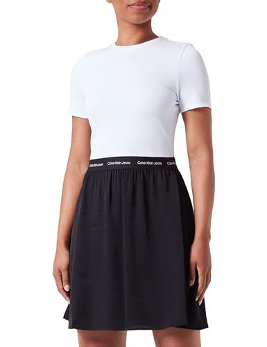 Calvin Klein Jeans Women's Logo Elastic Short Sleeve Dress Fit & Flare Dresses, Bright White/Ck Black, XL