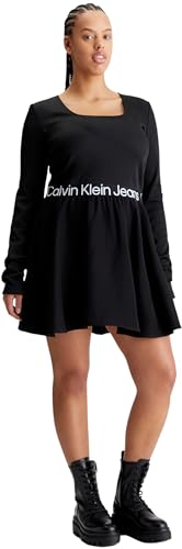Calvin Klein Jeans Women Plus Logo Elastic LS Dress Fit & Flare Dresses Black, 3XL