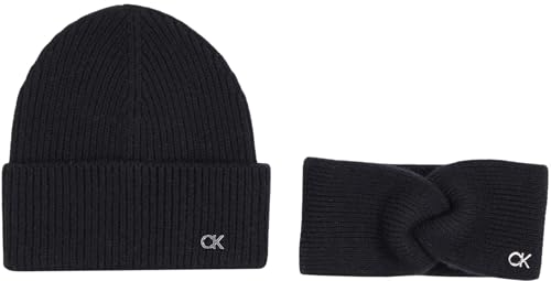 Calvin Klein Women’s CK Metal Beanie & Headband Gift Set, Black (Ck Black), One Size